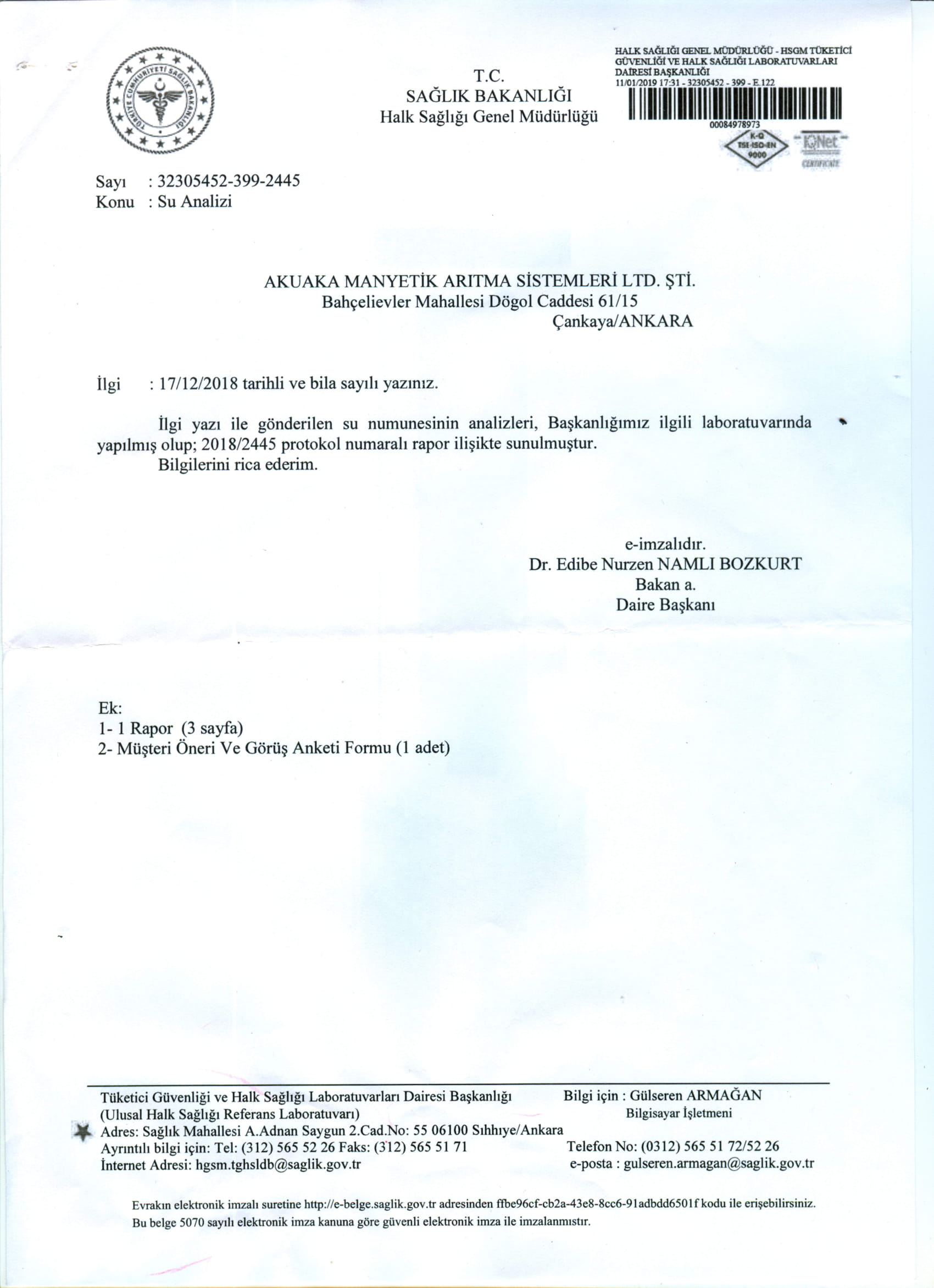 Halk Sağlığı Su Analiz Raporu